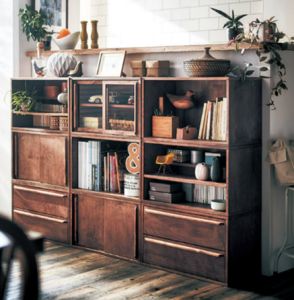 〔 ベルメゾン 水屋箪笥風引戸キャビネット/組み合わせて使えるディスプレイユニットボックス 〕